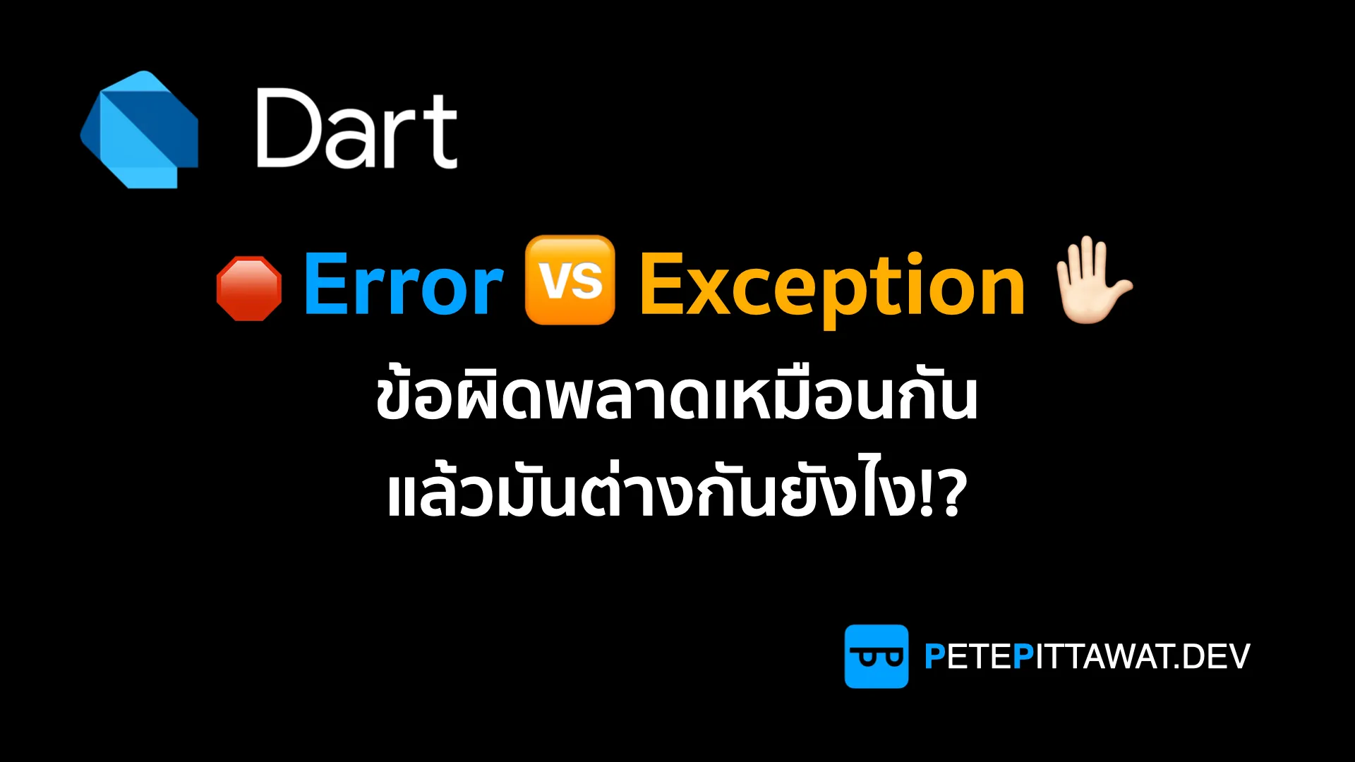 Exception เป็นข้อผิดพลาดที่เราคาดการณ์ได้ ซึ่งเรามักจะดัก Exception ผ่าน try-catch เพื่อนำไปดำเนินการต่อตามที่เราต้องการนั่นเอง
